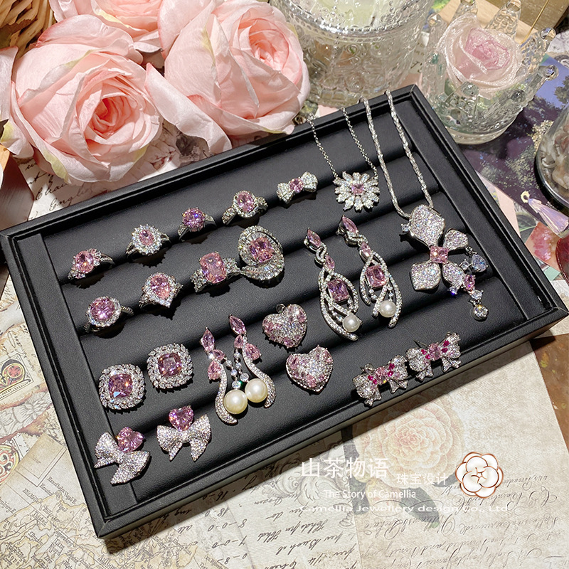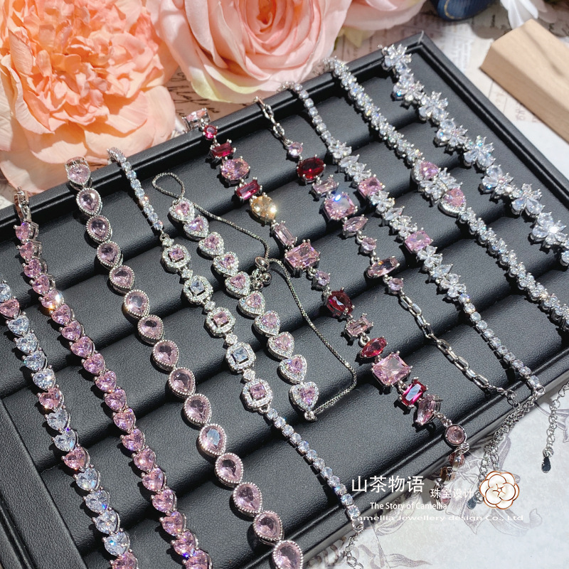 Camelliaロリータ花園虹宝石セット女性金メッキキャンディー色宝異形ジルコニウムイヤリングブレスレット