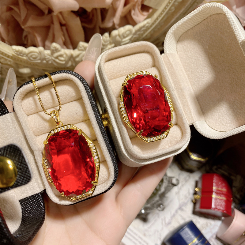 山茶欧米潮流重工20*30mm大裸石彩宝指輪には超閃鳩ヘモグロビンネックレスセットが入っている