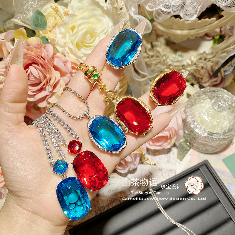 ツバキの越境中世の彩宝の超巨大な宝石の重工業の宝石のペンダントの金メッキの裏地の設計の富婆の指輪