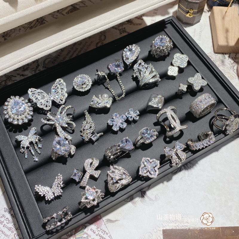 ツバキの新型の超仙の王女の宝石の愛の指輪のセイコーは18kのきらきらと輝くジルコニウムのダイヤモンドの方糖の開口の指輪をめっきします。