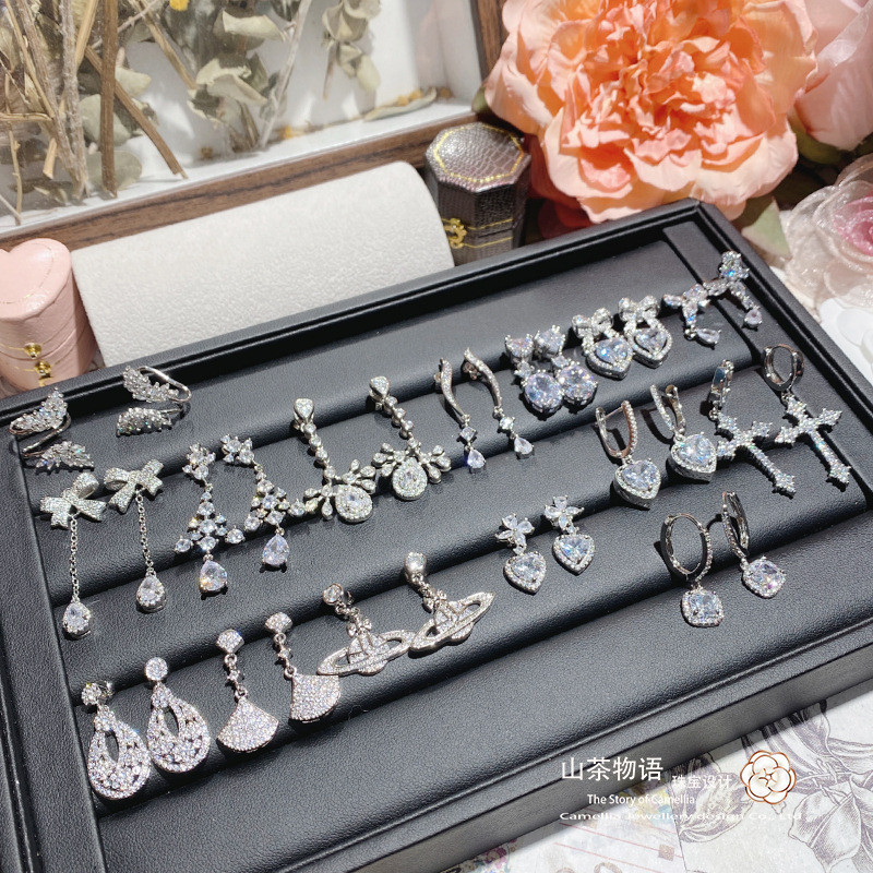 ツバキの宝石の2024の新型の高炭素のドリルの耳飾りのセイコーの厚さは18kのプラチナのフリンジの超仙の水滴のイヤリングの女性をめっきします。