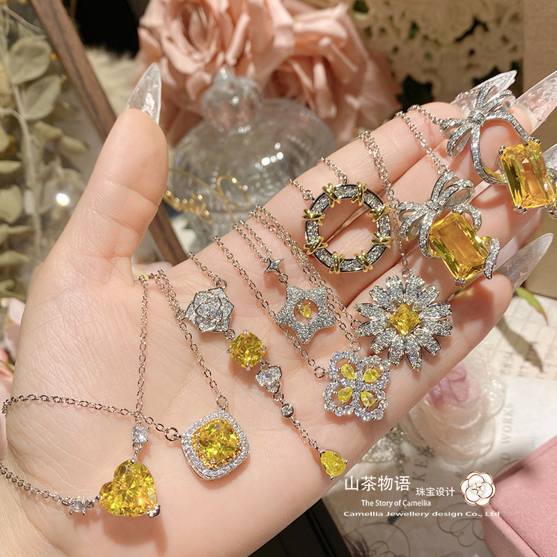 ツバキの欧米の豪華なドリルのデイジーの濃い色の黄色のドリルのシリーズのネックレスは金メッキの韓国版の気質の霊動の鎖をめっきします。