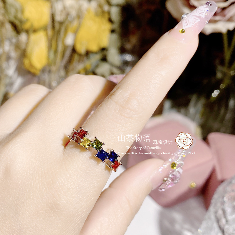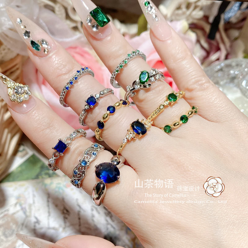 ツバキ日系彩宝高級感リンゴ緑ジルコニウム指輪女性メッキ18kセイコー軽豪華で洗練された指輪を調節できる