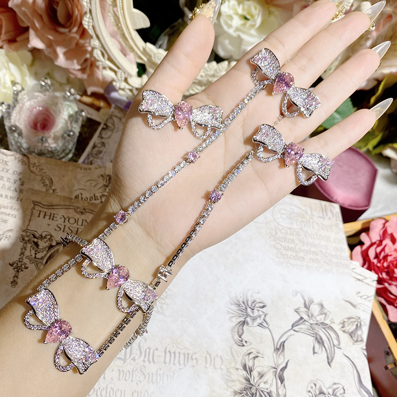 ツバキのロリータの超仙のきらきらと輝く紅の粉の宝石の首のチェーンの金メッキの重工業のいっぱいのドリルの小さい大衆の蝶結びのスーツ