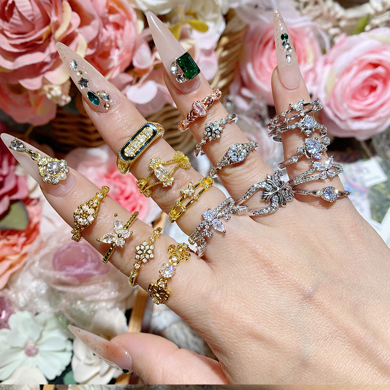 ツバキの高定の新品の中古の古いお金の風の蝶の指輪は18kをめっきしてジルコンを象眼して金色の軽くて豪華な指輪をちりばめます。