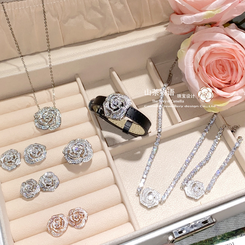 Camelliaシューベルト山茶宝石セット小香風メッキ18k金花ジルコンモザイクブレスレット指輪