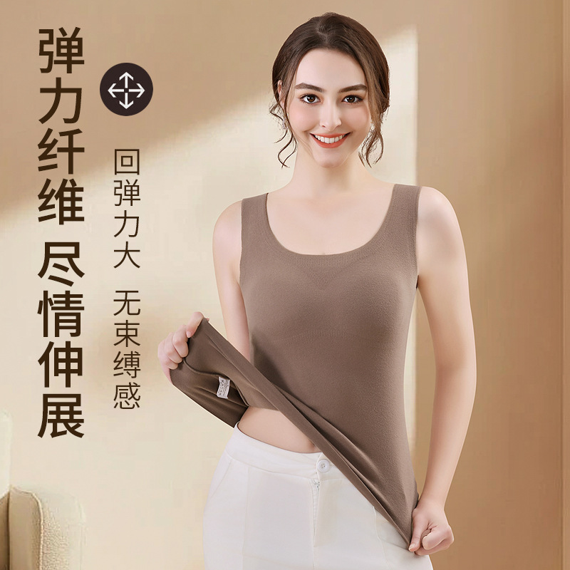 秋冬一体式发热加厚保暖背心女士带胸垫可外穿内搭打底内衣女上衣