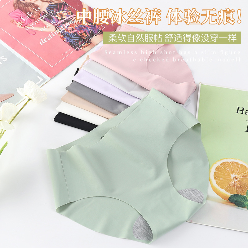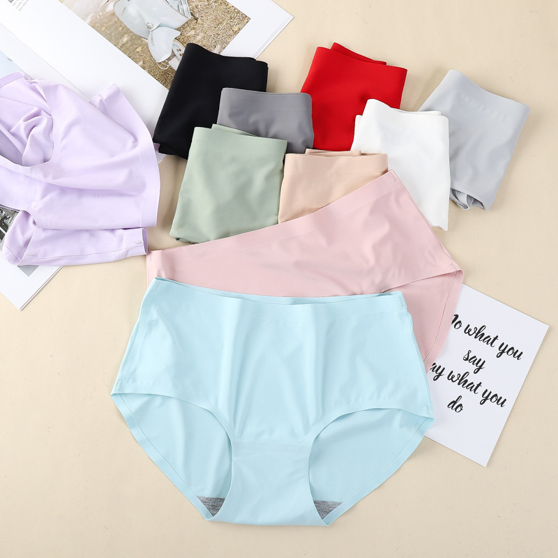 【個別包装】安心の高品質シームレスワンピースアイスシルクミッドウエスト無地レディース三角パンツ下着女性卸売