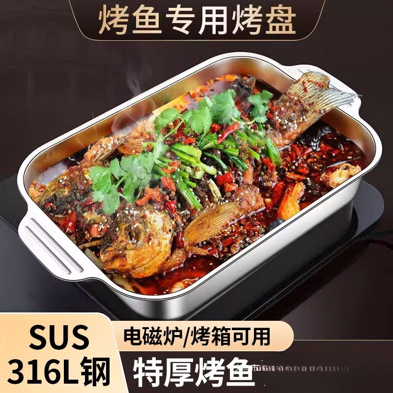 ステンレス焼き皿魚皿家庭用深皿トレイ角皿電磁ストーブ火皿料理皿