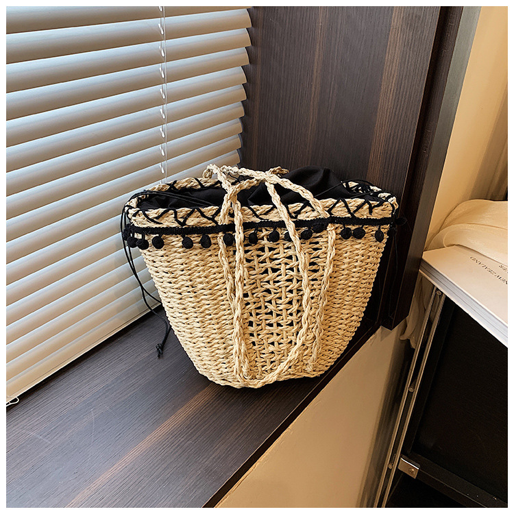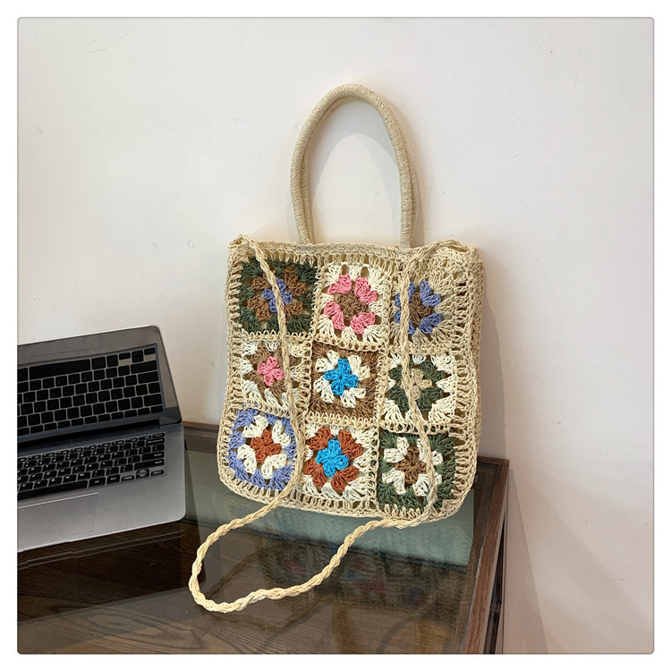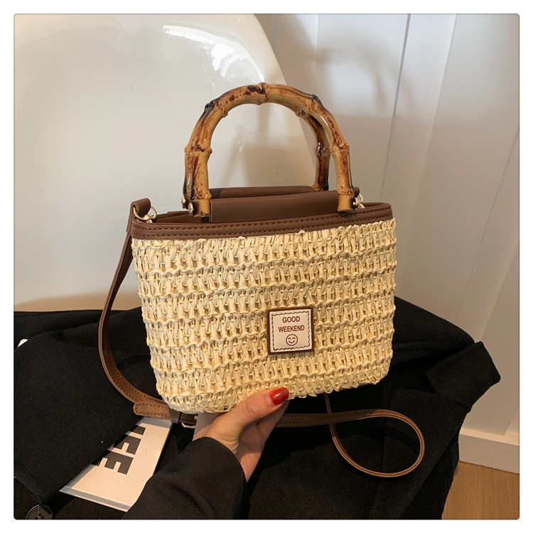 春の新型2024ファッションシンプルなデザイン草編み素材シングルショルダーバッグのファッション女性バッグ