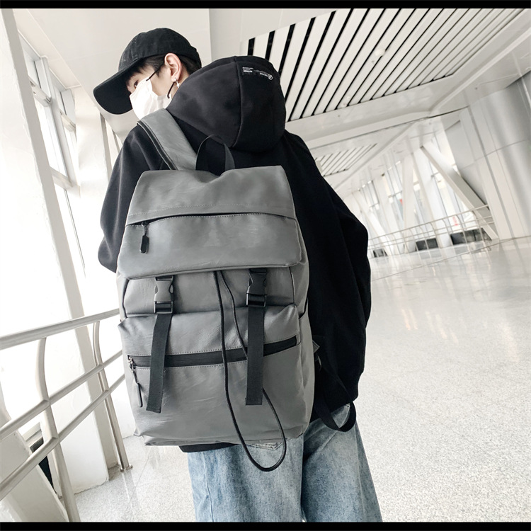 春の新型2024ファッションシンプルなデザインPU素材のリュックサックのファッション男性カバン
