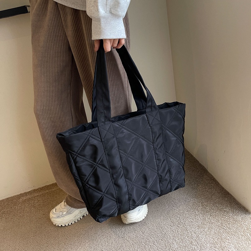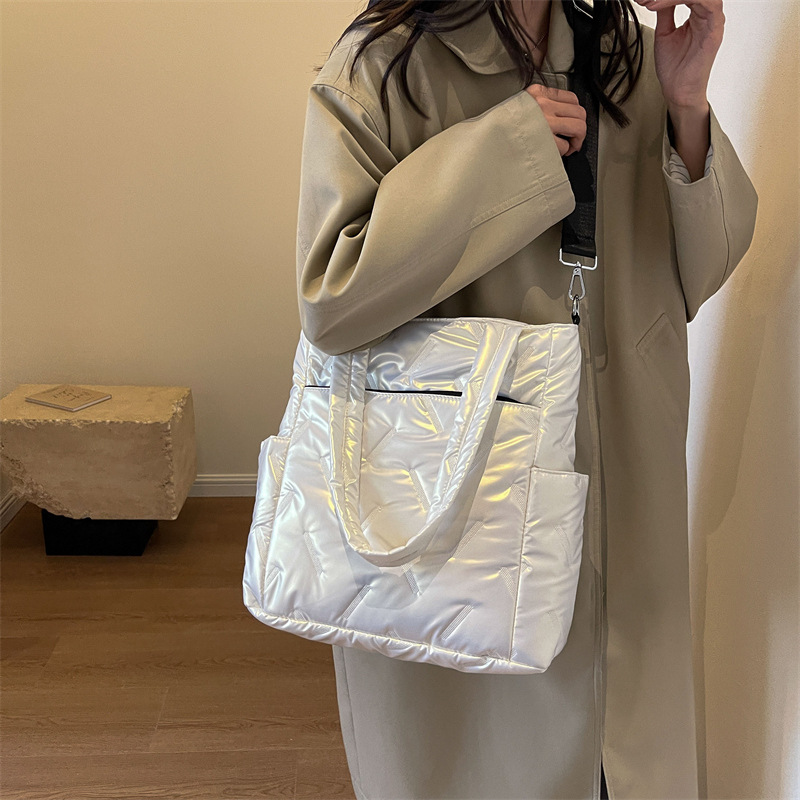 春の新型2024ファッションシンプルな手提げデザインは、ナイロン素材のシングルショルダーバッグのファッション女性バッグを斜めにカバーしています。