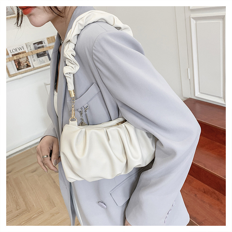 夏の小カバンにはしわがあります。女性のカバン2021新型チェーンの小衆デザインのシングル肩の脇の下のカバンです。