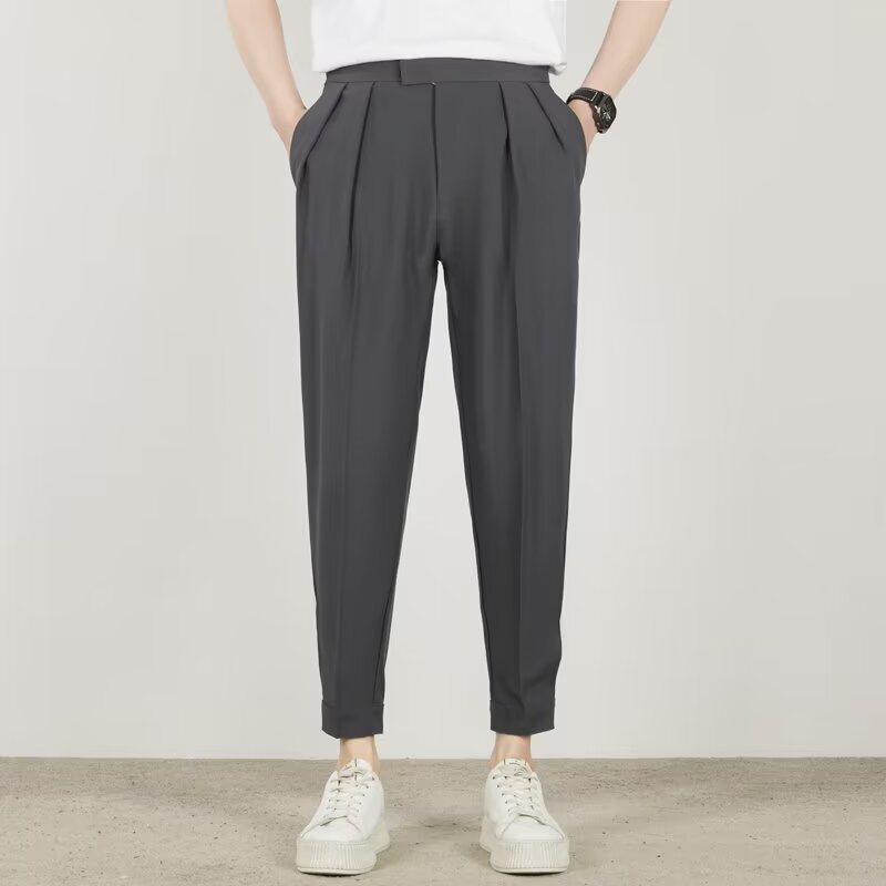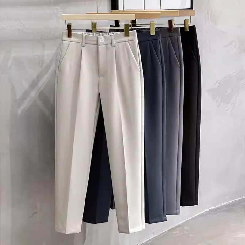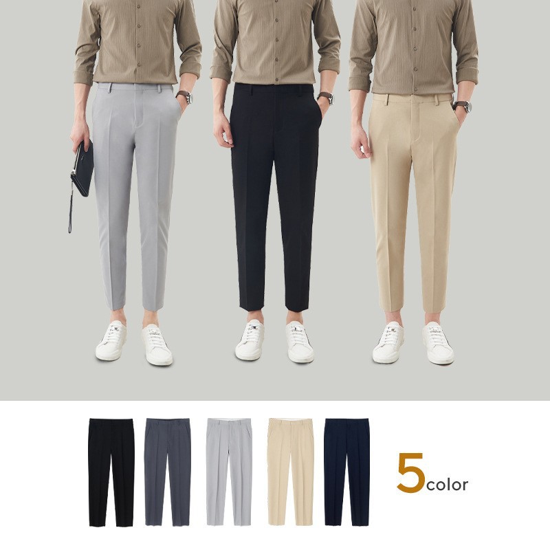ズボンの男性の9分のビジネスはアイロンをかけません。カジュアルな正装の高級感があります。