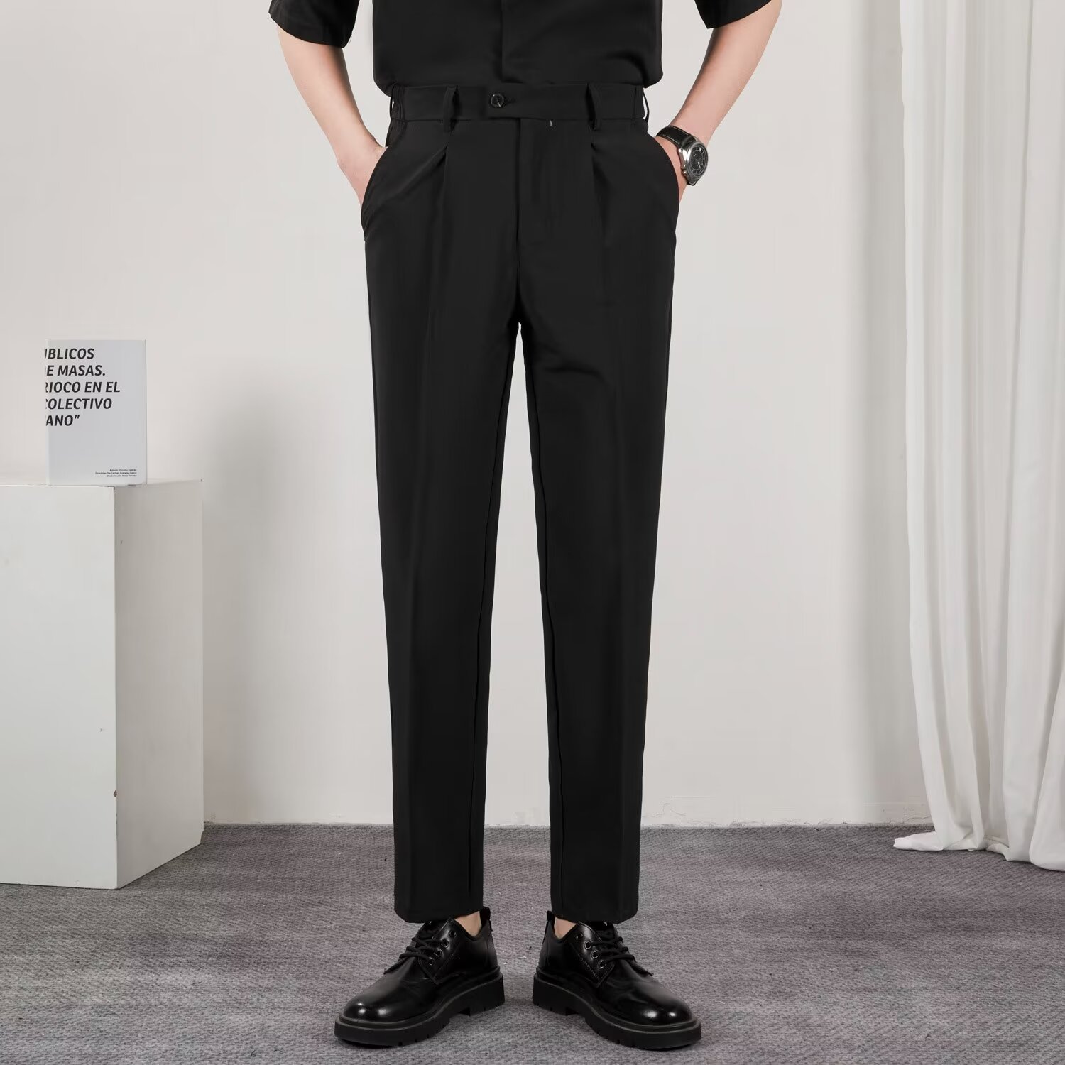 カジュアルパンツ男性2024新型夏の薄いファッションブランドのストレート9分のウエストの小さいズボンのスリムなズボン