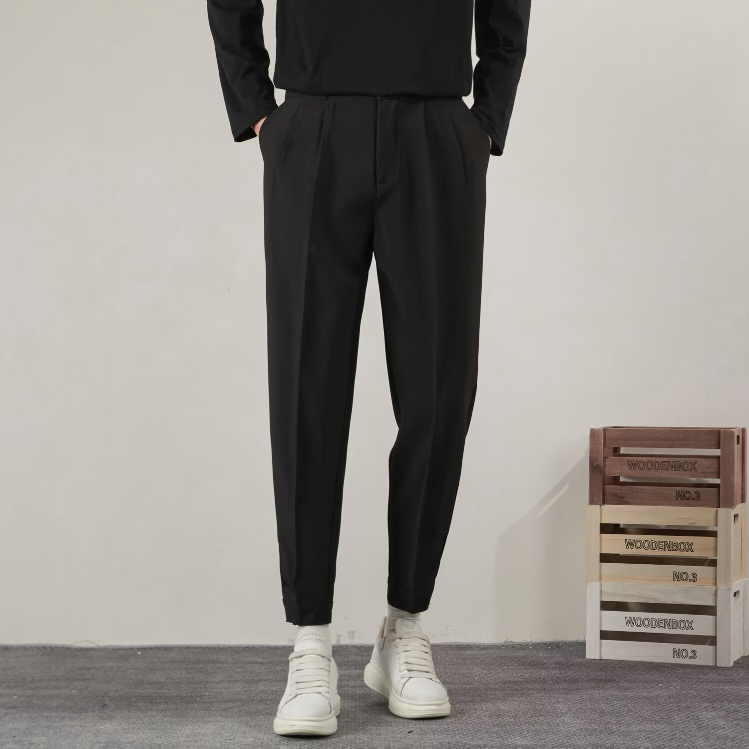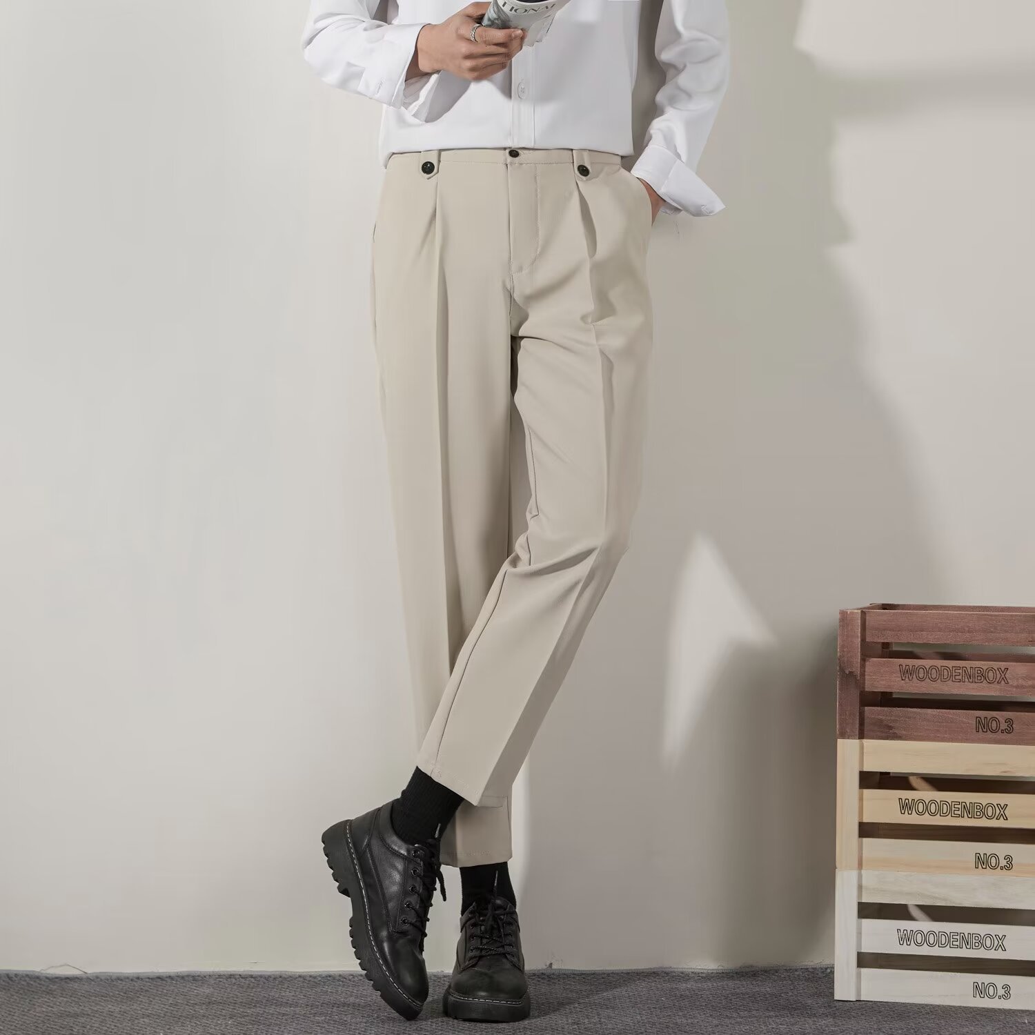 ハーフウエストスーツ男性ストレートカジュアルパンツ黒ビジネススーツ9分丈パンツ