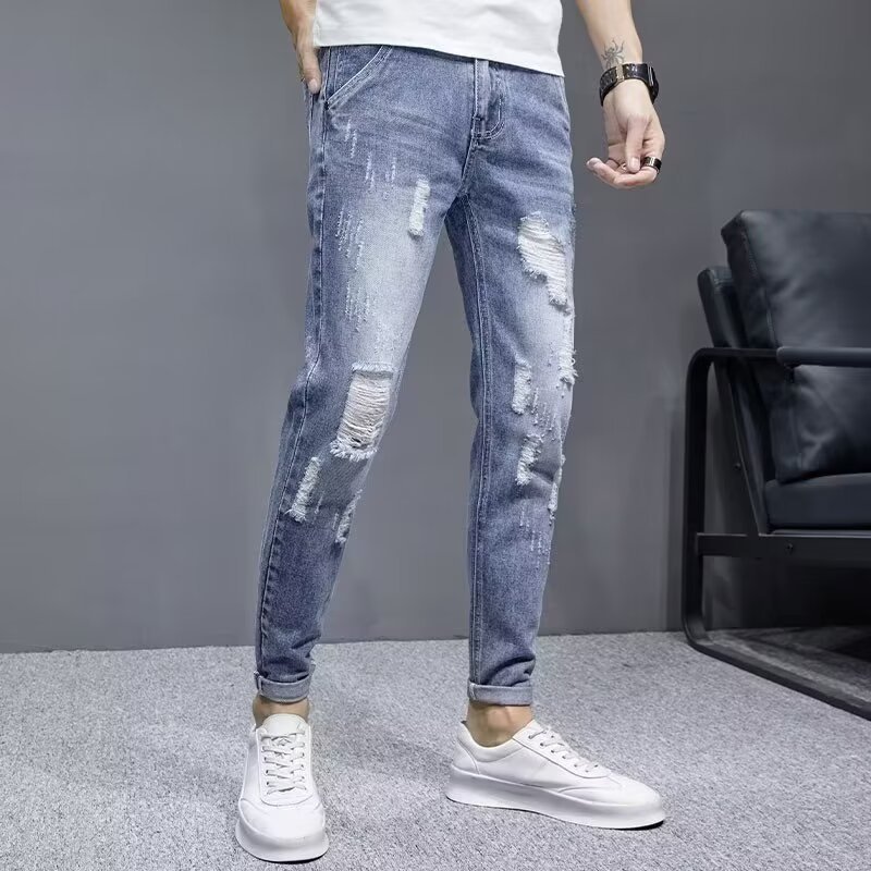 夏の新型の大きな穴の9分のジーパンの男性の修身の小さい足は高くてカジュアルなレトロな乞食の潮牌のズボンを現します。