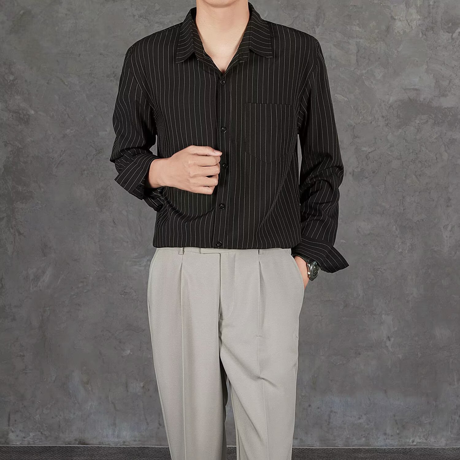 黒シャツ男長袖春夏高級感痞帅男性カジュアル紳士服シンプル感シャツ潮男生
