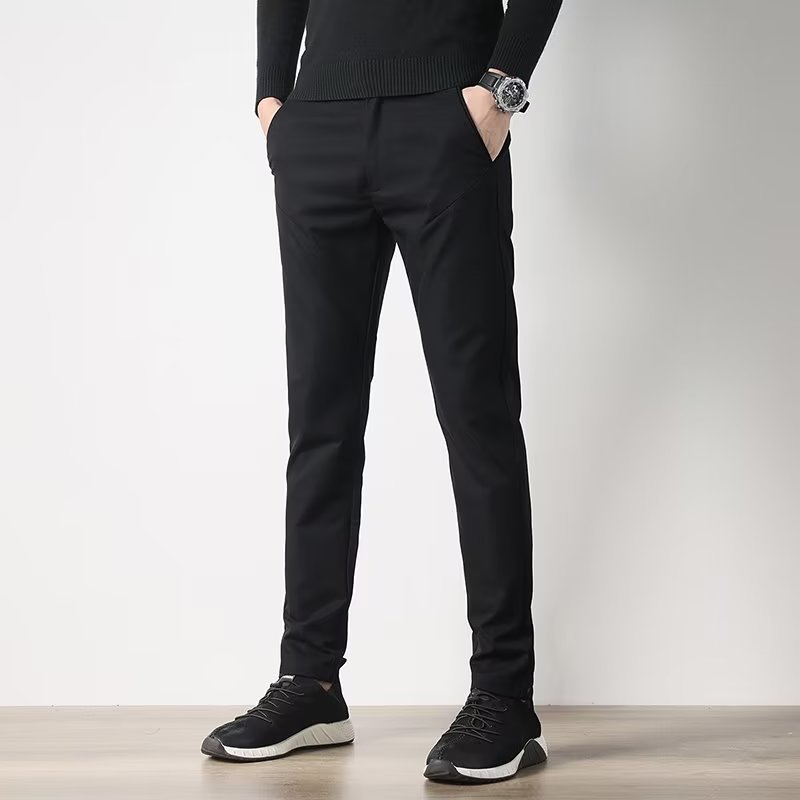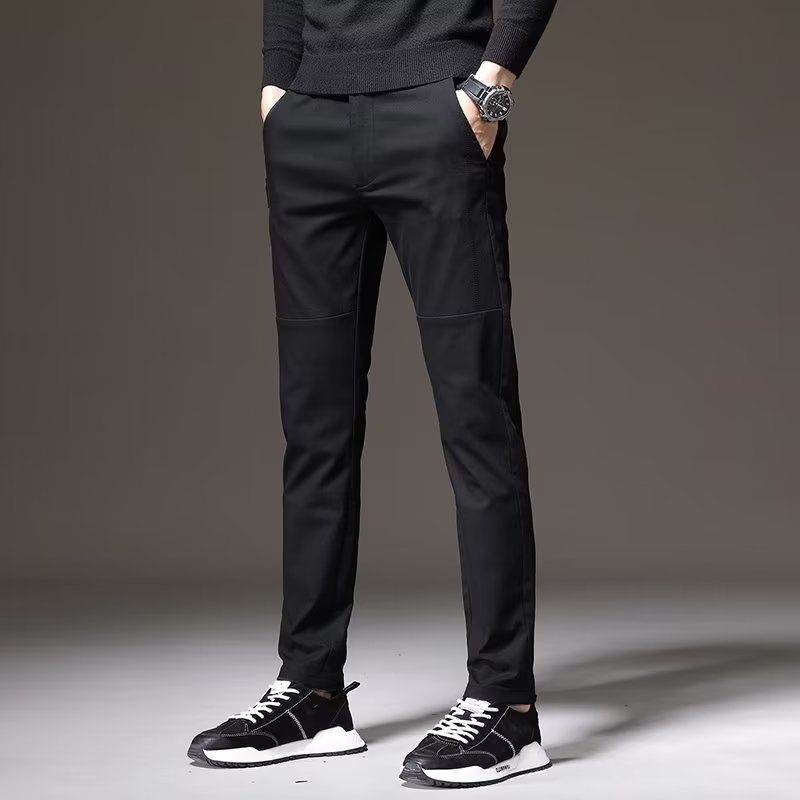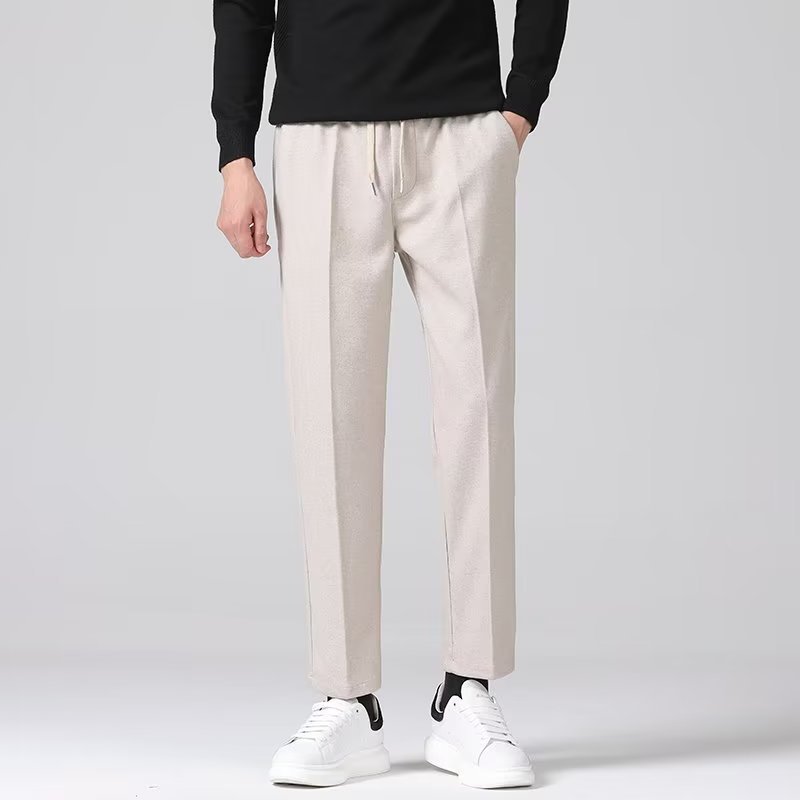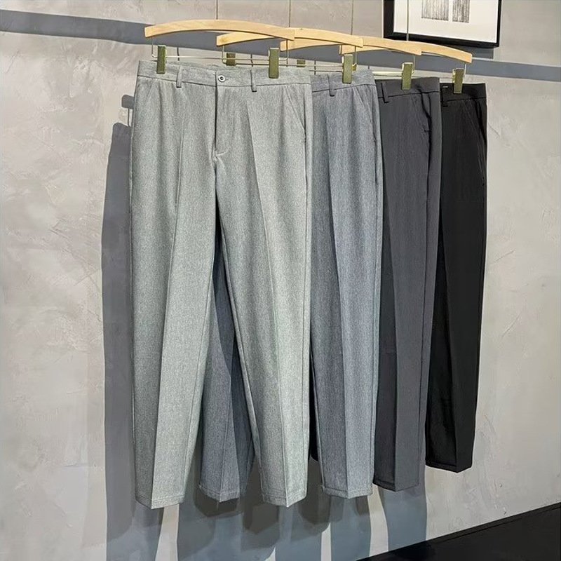 秋冬の純色のストレートのズボンの男性の小さい足のストレートのズボンは腰の弾力性のカジュアルな長いタイプの男性のスーツのズボンを締めます。