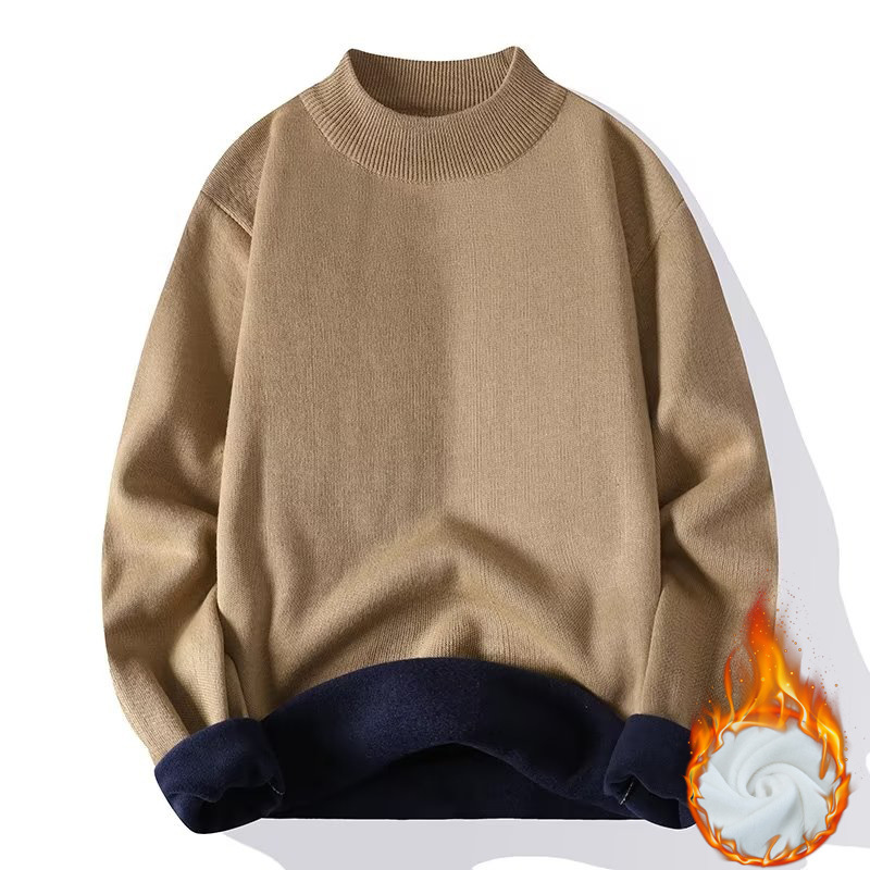 秋冬半高襟男性ベルベット厚手ニット純色シャツ保温セーター男性潮糸衣男性服
