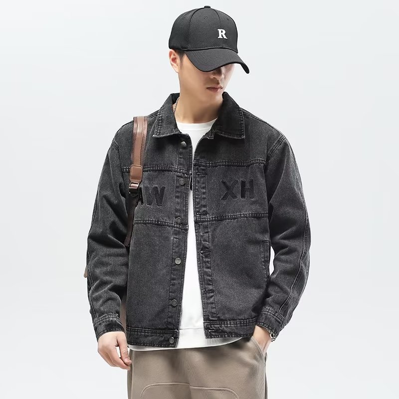 春と秋のファッションブランドのデニムのコートの男性のゆったりした大きいサイズのカジュアルな黒色の百合のジャケットの韓国版のファッションのメンズ