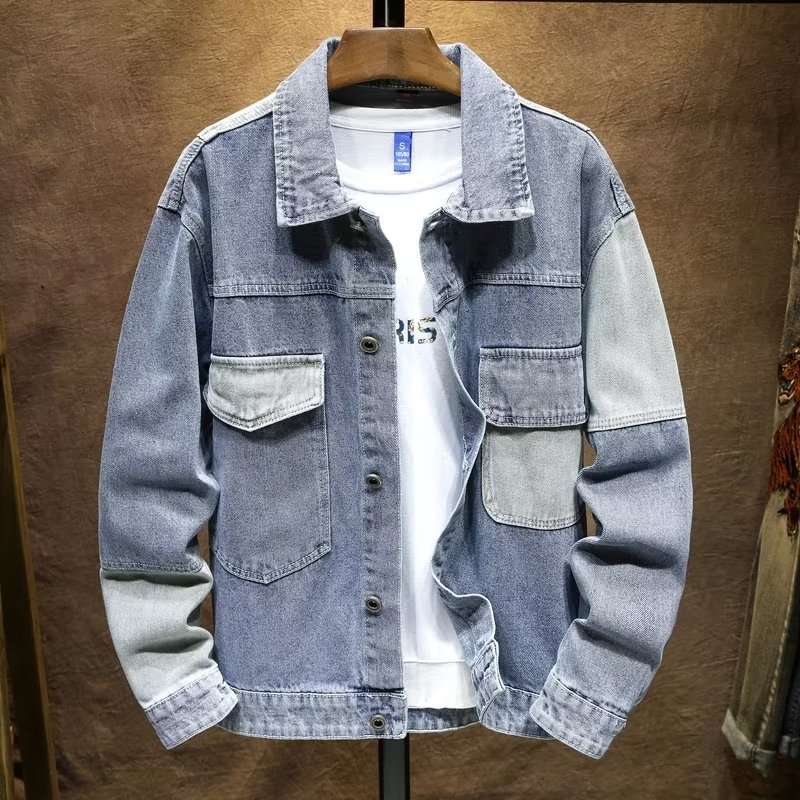 春と秋のデニムの上着の男性の紳士服は色を合わせます。