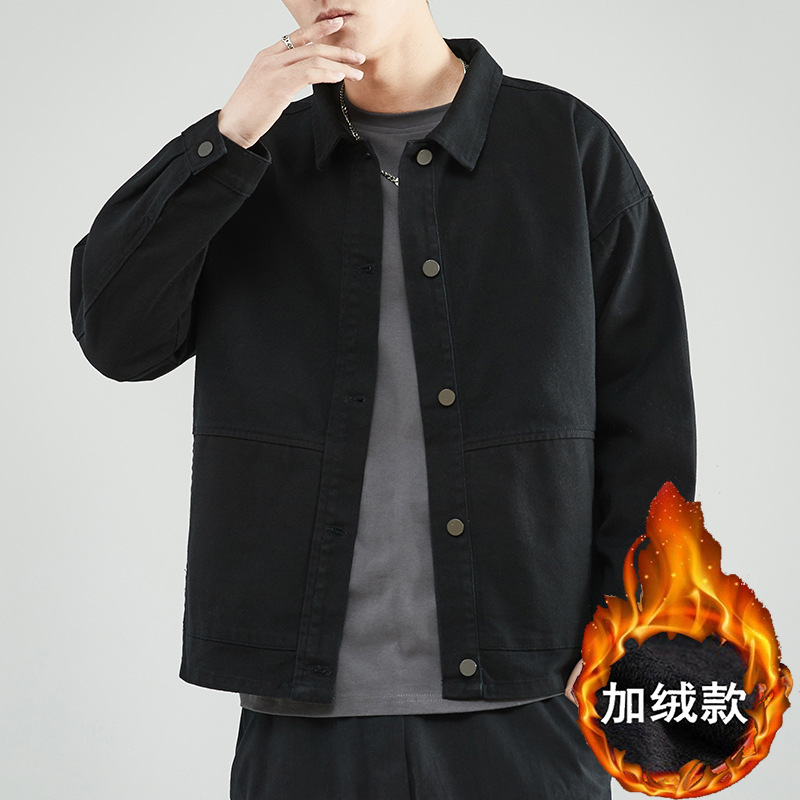 秋冬の新型ベルベットデニムコート男性日系レトロなファッションブランド黒トレンドゆるい工装ジャケット男