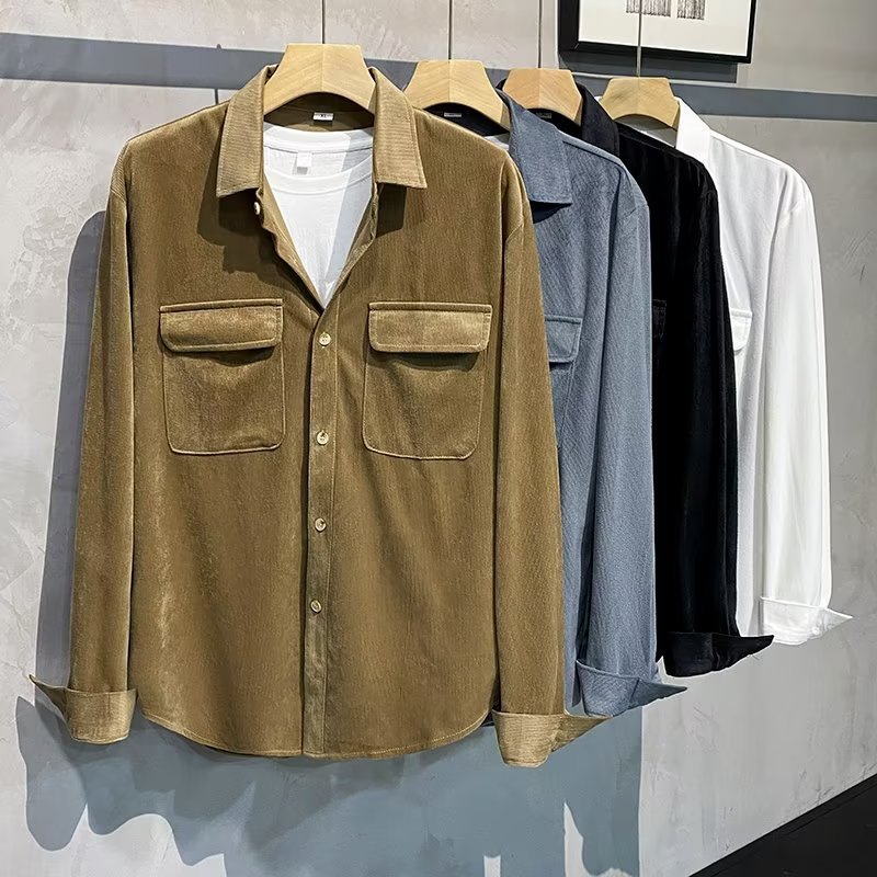 春と秋の冬系長袖シャツ男性コーデュロイファッションブランドのカジュアルシャツの襟がレトロでシンプルな男性服