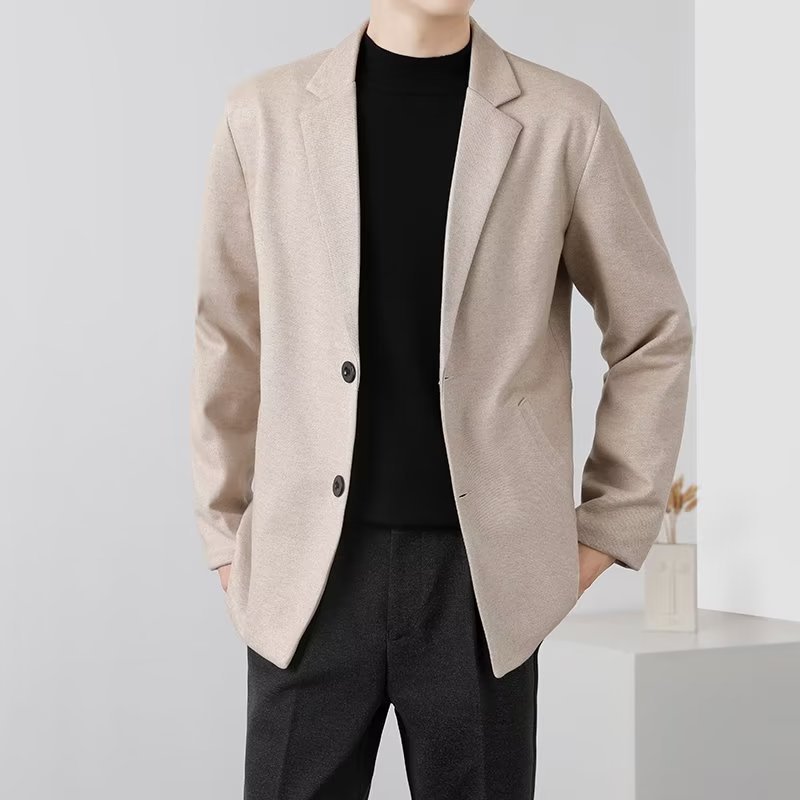 毛のスーツのコートの男性の秋冬の新型のシンプルで軽い熟風の男性服のカジュアルな冬の男性のラシャのスーツの男性