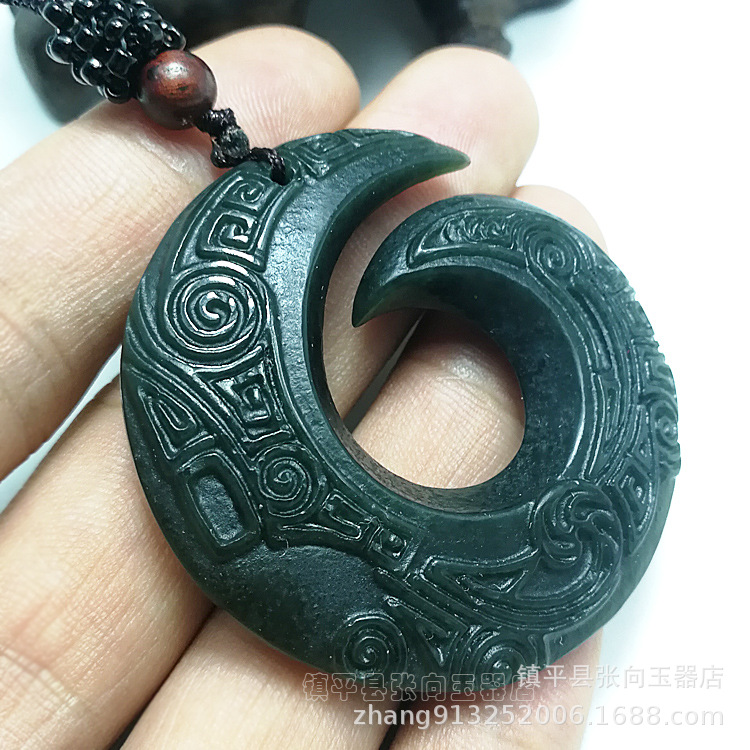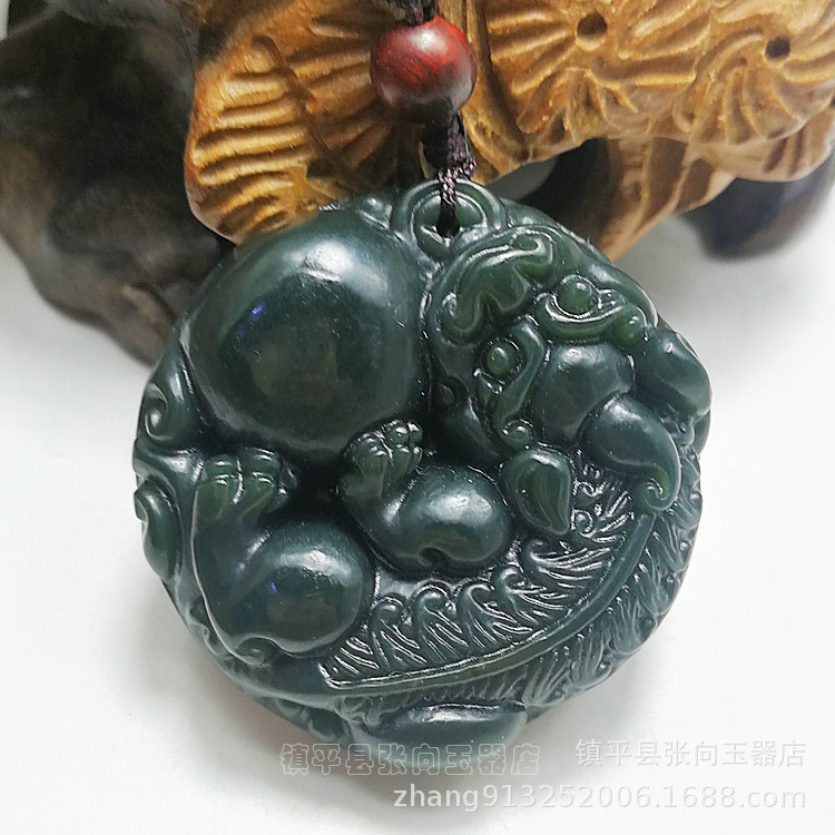 和田玉青玉ペンダント卸売り男女モデル新疆和田玉模造古紋大サイズペンダント卸売り