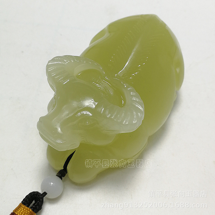 汗玉牛の手の部品の卸売り玉の彫刻の大きいサイズの牛は家の事務の玉の小さい置物を遊びます。