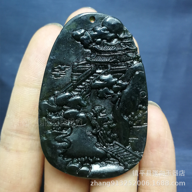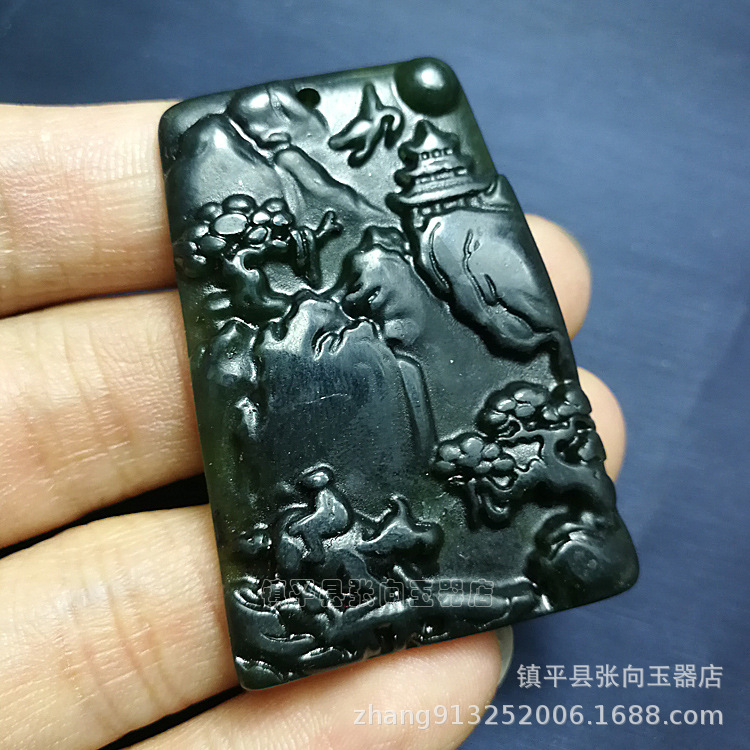 玉器卸売り新疆墨玉山水人物ブランド蛇紋石玉ペンダント会販売ギフトメーカー卸売り