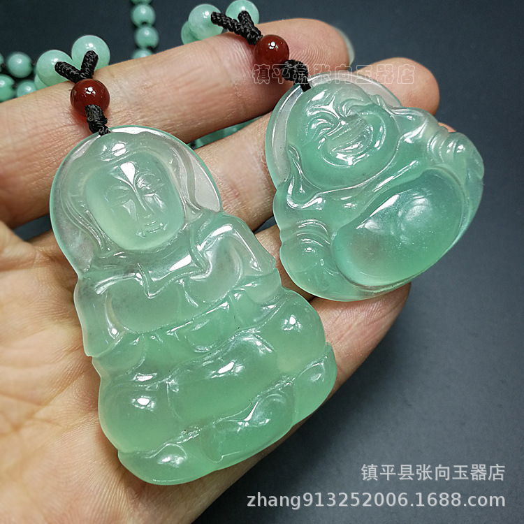 南陽玉器翠緑の青い花石英岩玉観音仏卸売り男女のペンダント卸売り
