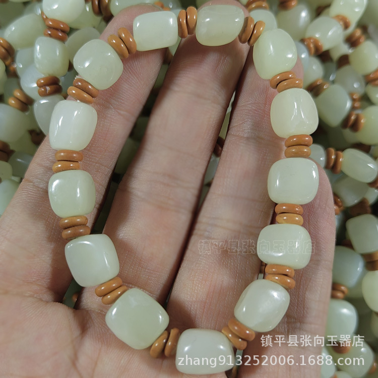 和田玉色汗玉ブレスレット卸売り玉器青白玉桶玉ブレスレット玉手串メーカー