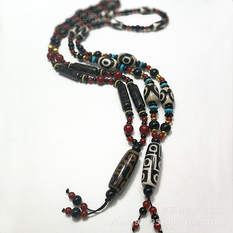 チベット天珠三眼天珠ネックレス卸売りチベット式の古い瑪瑙の毛のチェーンメーカーの卸売り