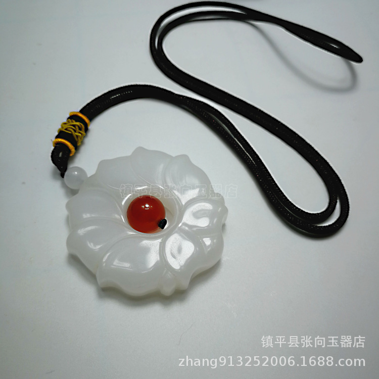 新疆金糸玉蓮花ペンダント石英岩玉両面蓮花ペンダント白玉ネックレスメーカー卸売り