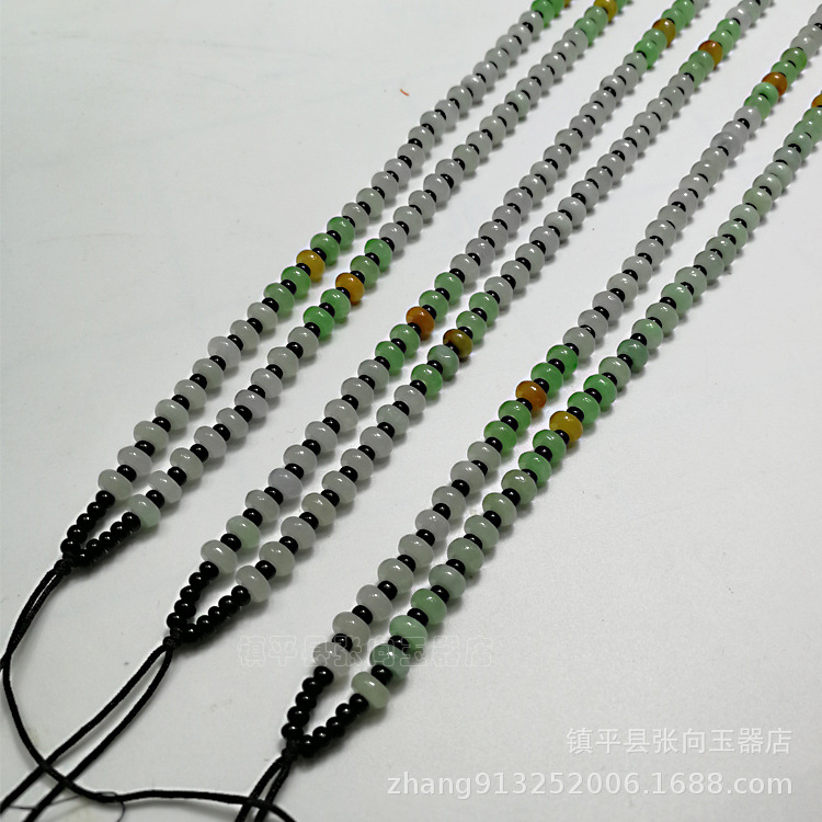 巴山翡翠吊り下げ縄と長型翡翠玉そろばん玉ストラップチェーンロープメーカー卸売り