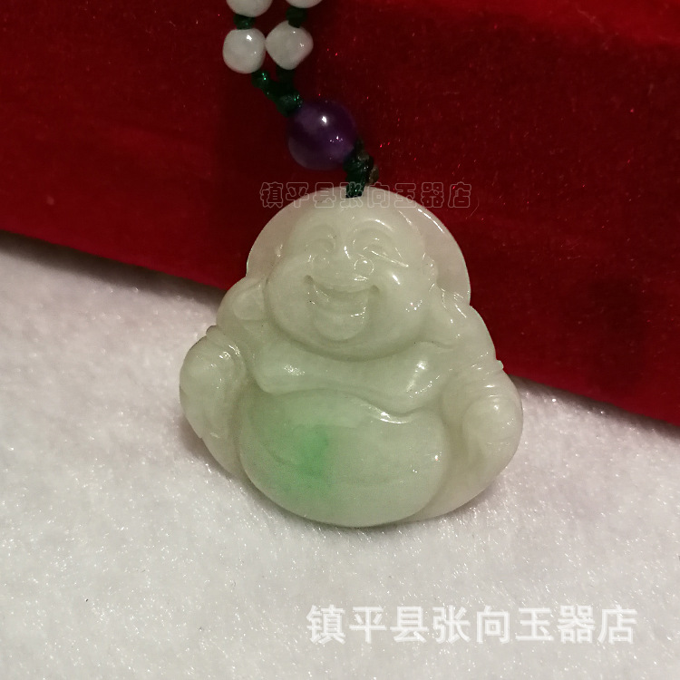 緑の翡翠玉の弥勒仏のペンダントはミャンマーの玉器の女性の金の玉仏公のペンダントを卸売りします。