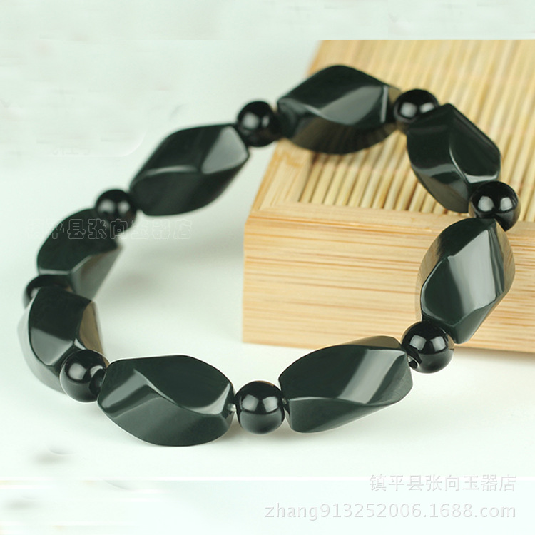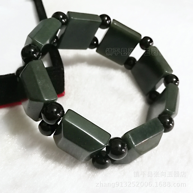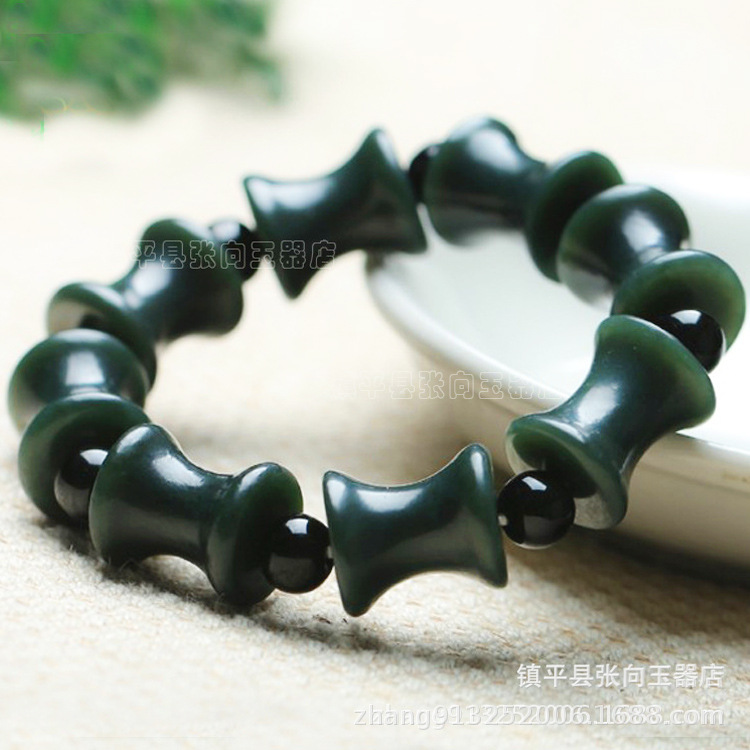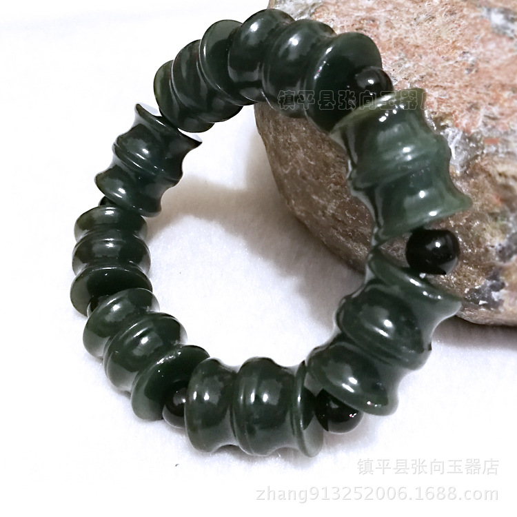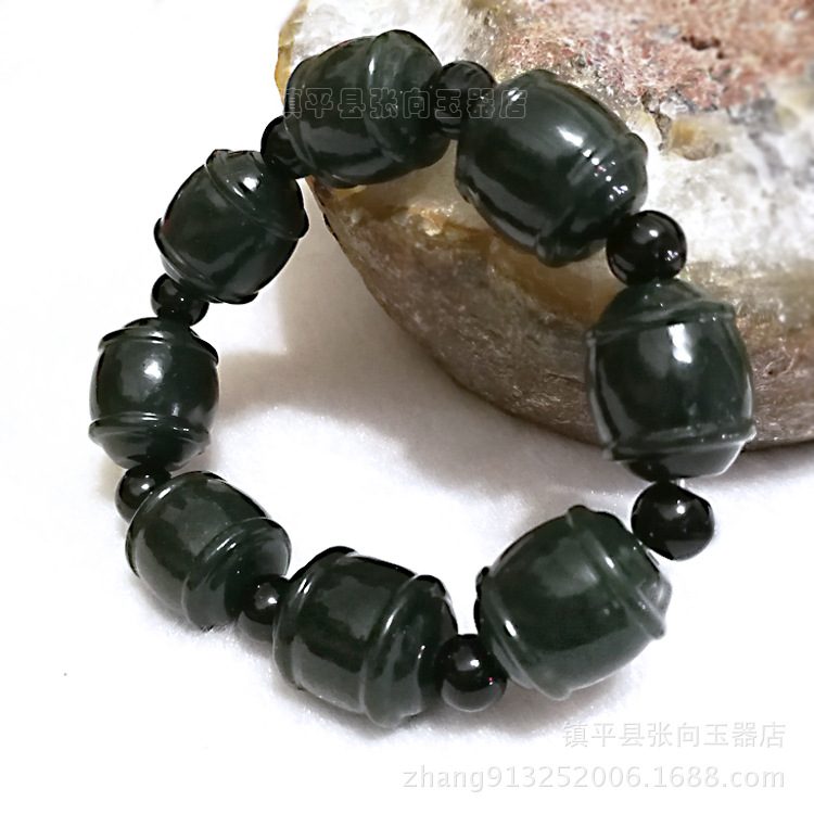 玉器工芸品和田青玉ブレスレット新疆和田玉青墨玉鼓珠男女モデルブレスレット卸売り