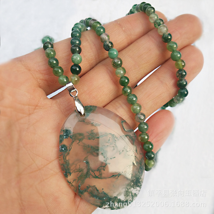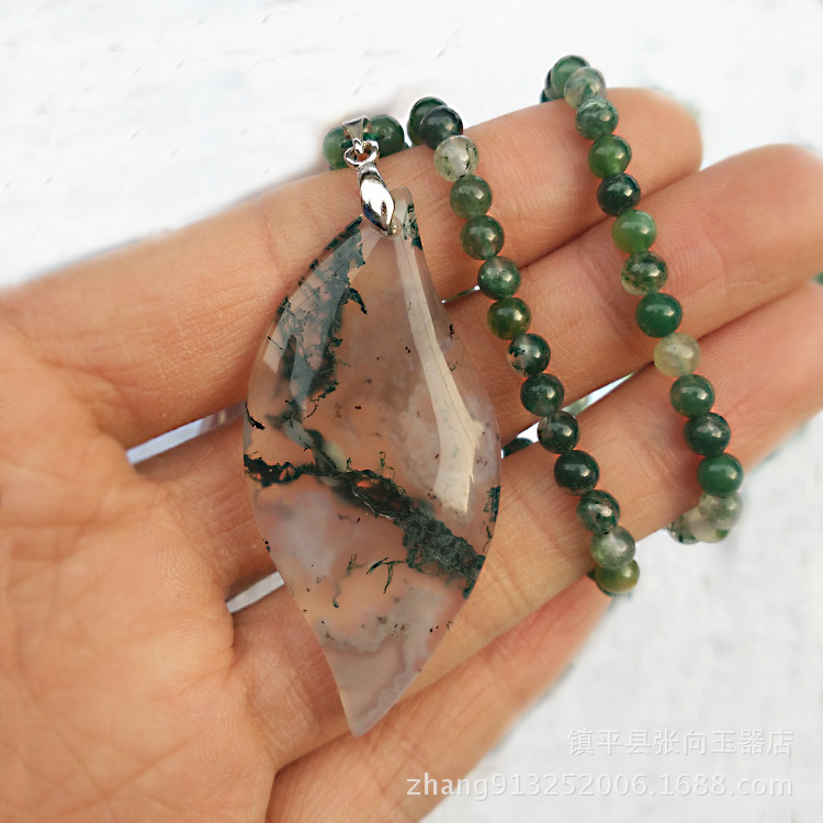 玉器卸売り水草瑪瑙ペンダントネックレス卸売り水草瑪瑙ペンダントチェーンセット卸売り