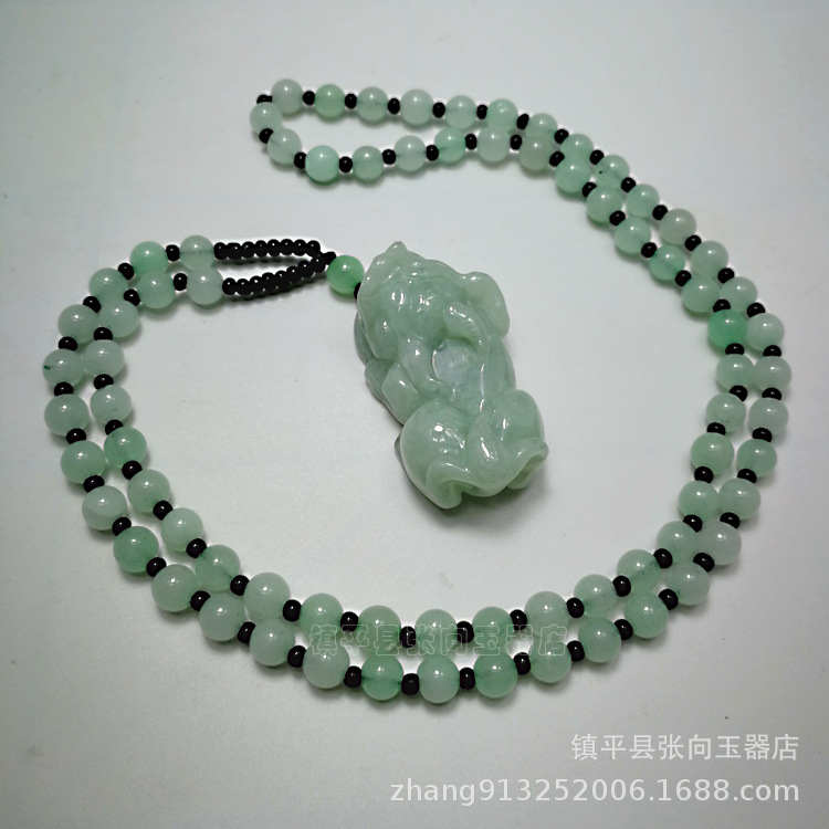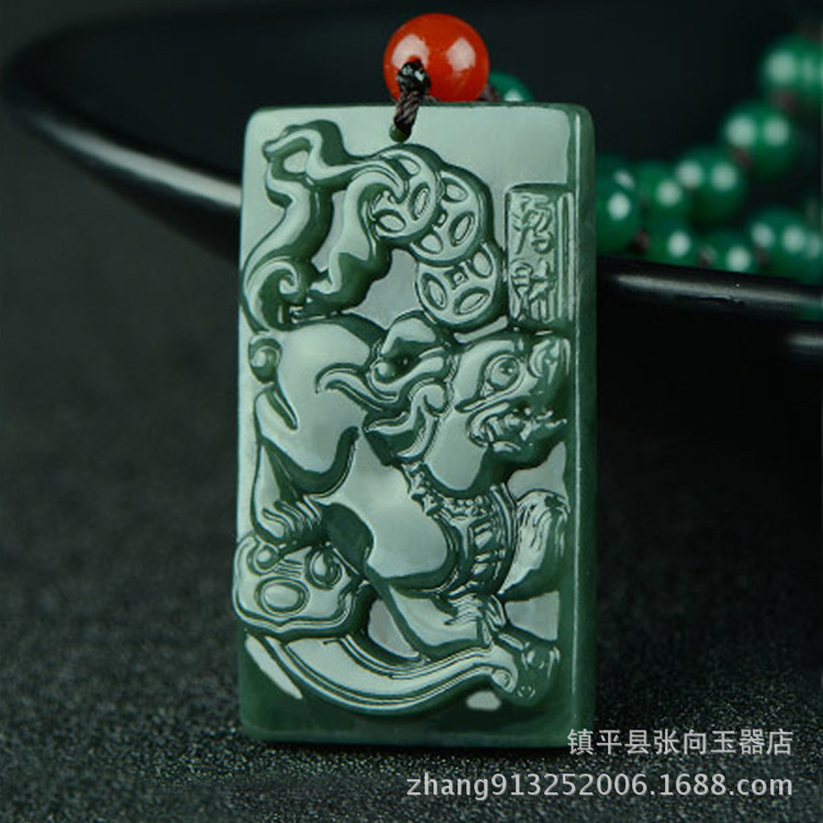 南陽玉器卸売り乾青翡翠玉ボタンペンダント乾青鉄龍生ボールチェーンネックレス卸売り