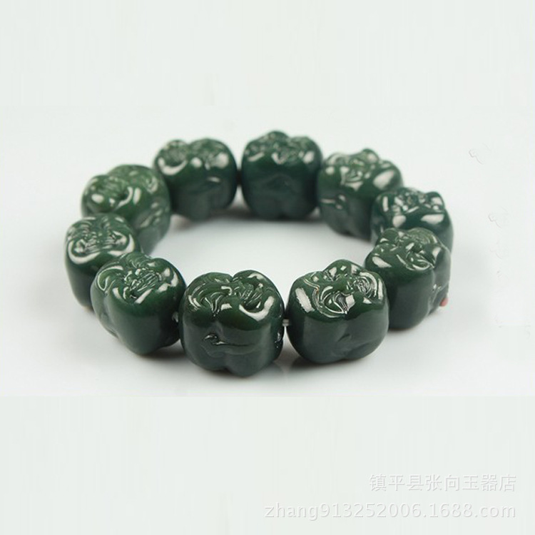新疆和田玉仏頭手串青玉十八羅漢仏珠手串青玉男金ブレスレット卸売り