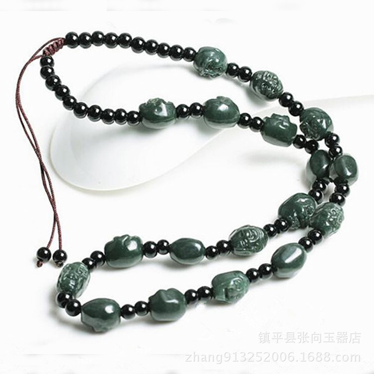 和田玉十八羅漢ネックレス卸売り青玉玉器ペンダント