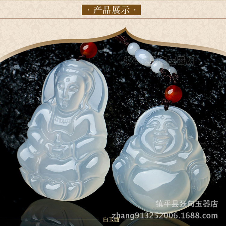 メーカー卸売り氷種玉髄瑪瑙観音仏ペンダントカップル男金観音女金仏公卸売り