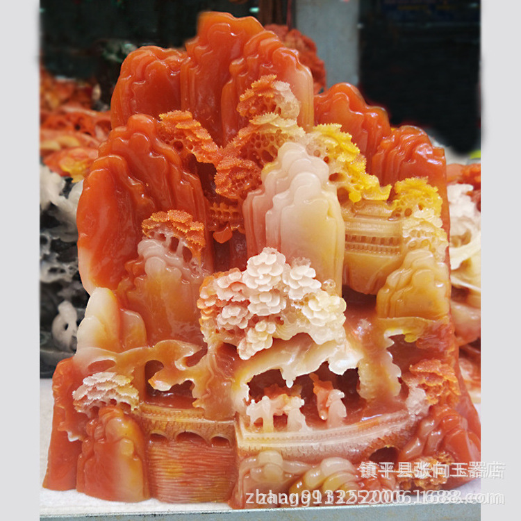 寿山石の彫刻をまねて山水を飾って家の玉の工芸の贈り物を飾って石の彫刻の玉の器の置物を収集します。