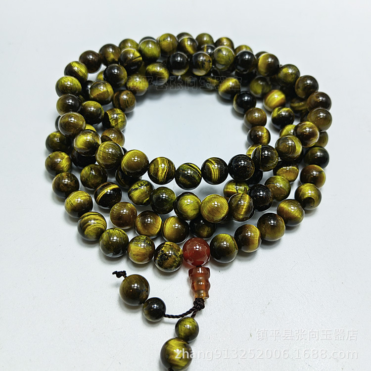 虎眼石108個の仏珠ネックレス卸売り8mm虎眼石黄目紅目108個の三輪ブレスレット手串