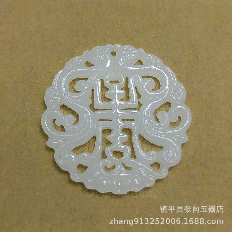 白玉汗玉模造古透かし彫り寿字牌卸売り白玉ストラップ透かし彫りペンダント玉佩卸売り