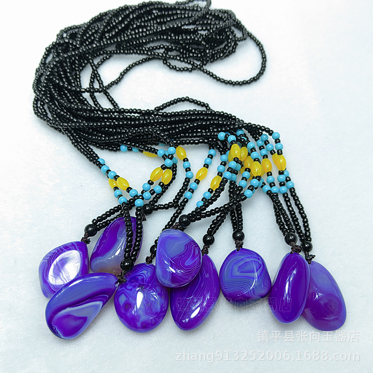 紫色の瑪瑙玉ペンダント卸売り糸瑪瑙ペンダント玉ネックレスセーターチェーンメーカー卸売り