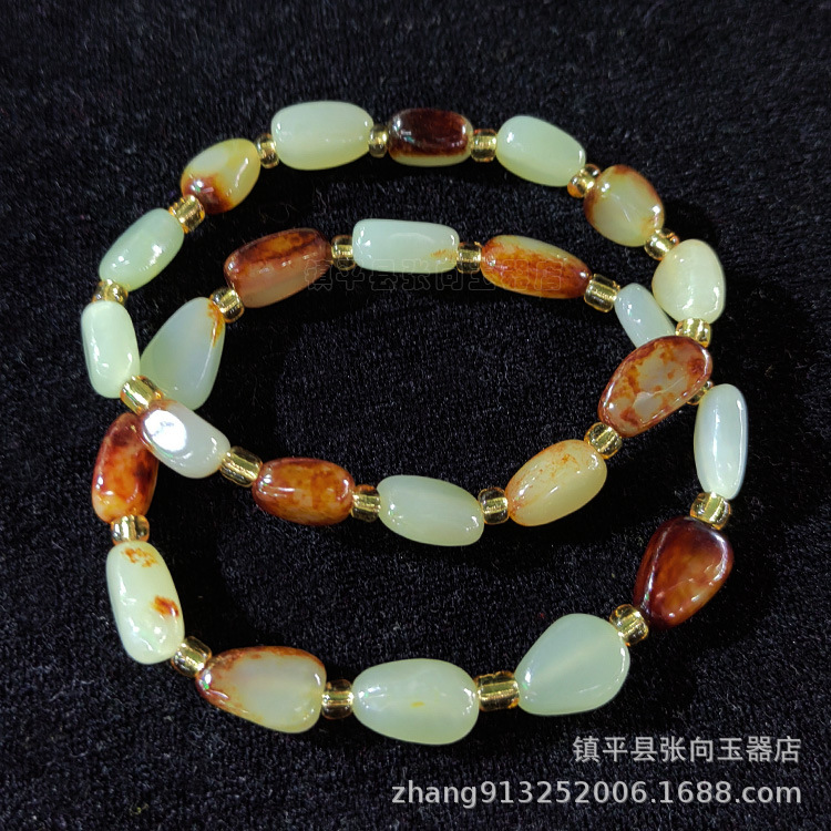 新疆の和田玉の種の材料の赤い皮のブレスレットの卸売りの男女の玉の手の串と田玉は形のブレスレットのメーカーに従います。
