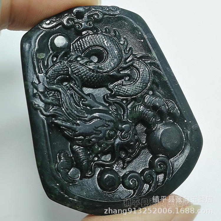 新疆墨玉龍牌ペンダント卸売り黒墨玉蛇紋石玉男金大ブランドペンダント卸売り